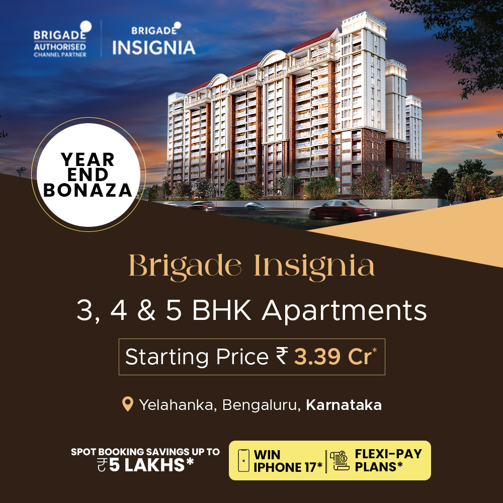 Introducing Brigade Insignia – Magnificent 3, 4 and 5-bed homes in Yelahanka, North Bengaluru.